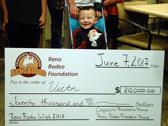 The program provides financial assistance to address medical needs. For the 2017 donation, the Reno Rodeo Foundation Board of Trustees approved $35,000 and the Capurro Foundation donated an additional $5,000. Victor, Emma and their families will also receive a VIP experience during the 2017 Reno Rodeo and will be recognized during the Reno Rodeo Kid’s Day on June 18.